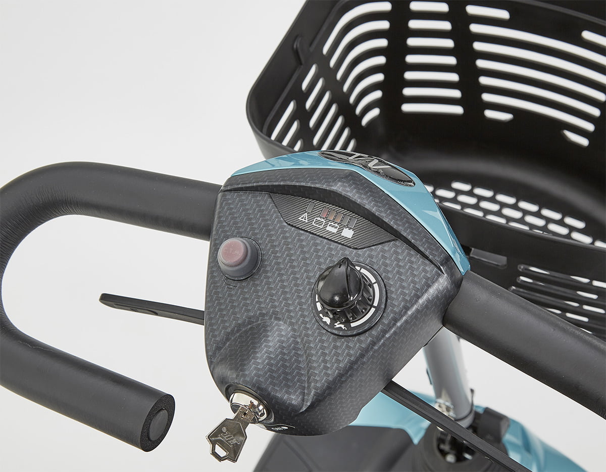 The Airium provides the user with an above average level of comfort. Featuring soft grip delta handlebars, that allows the user to operate the controls with either their fingers or thumbs. The large, padded seat can be easily rotated using the conveniently placed lever underneath, allowing the user to sit down and stand without any obstructions.
