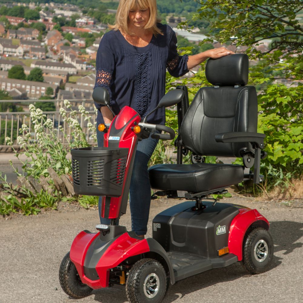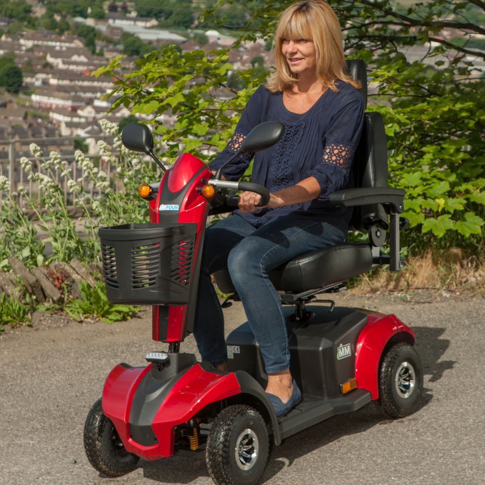 The solidly built MM4 Mobility Scooter features a distinctive slimline frame. This makes it great to use on public walkways, paths and supermarket aisles. Another neat feature of the MM4 is its ability to make light work of uneven pavements thanks to its pneumatic tyres.