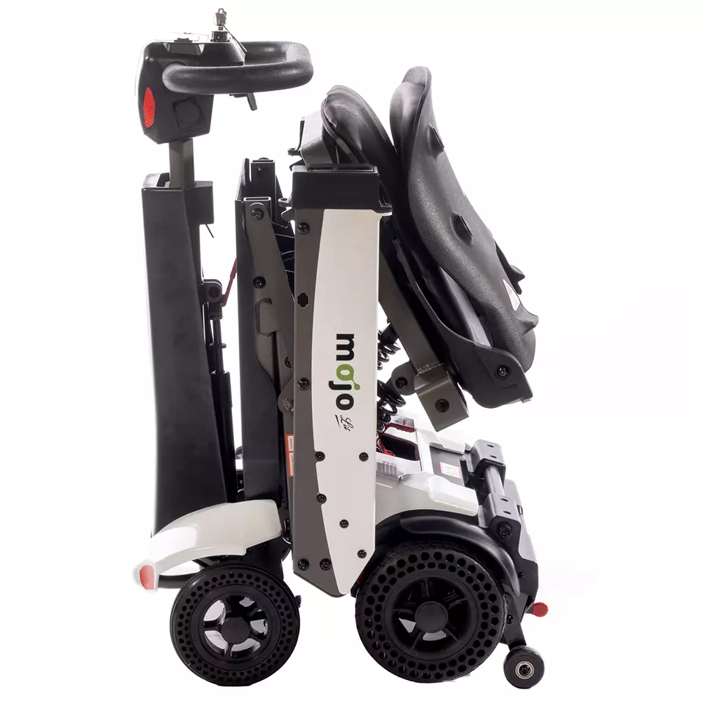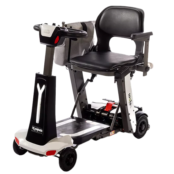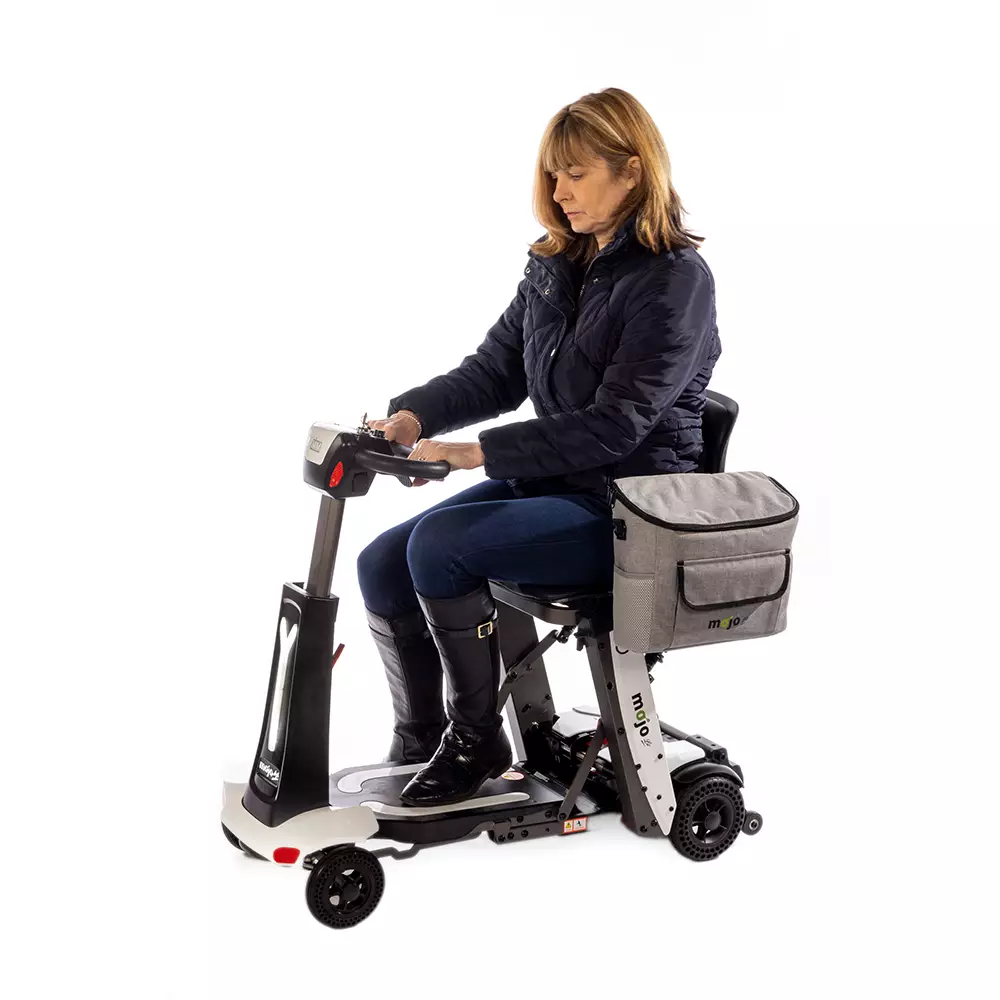 The new Mojo Lit Automatic Folding Mobility Scooter might be compact and feather-light, but there is so much more to tell. Mojo comes with a comfortable seat and backrest to enhance your comfort. In addition, honeycomb tyres deliver a softer ride, whilst the ingenious folding mechanism is fully automatic.